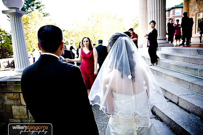 Regis College was the next venue, where Lisa & Jeff said their vows at their western-style ceremony. Lisa changed into her perfect white wedding gown and walked down the aisle as sun streamed into the beautiful room. After the ceremony we took photos on the grounds and at Norman Tower...which offered a dramatic back-drop. The reception was held at the China Pearl Restaurant in Quincy and featured a 10-course Chinese meal. The festivities ended at 11:00 and Lisa and Jeff were so happy that they were able to share every step of their day with their closest friends and family.